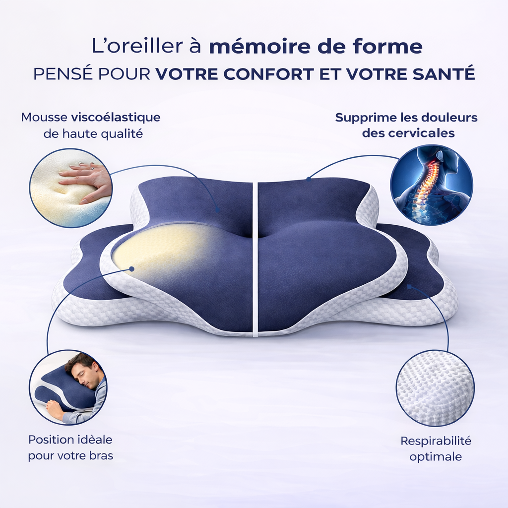 Contrairement aux oreillers classiques qui ne soutiennent pas toujours là où il faut, un oreiller ergonomique respecte la courbure de votre colonne et accompagne vos mouvements pendant le sommeil.